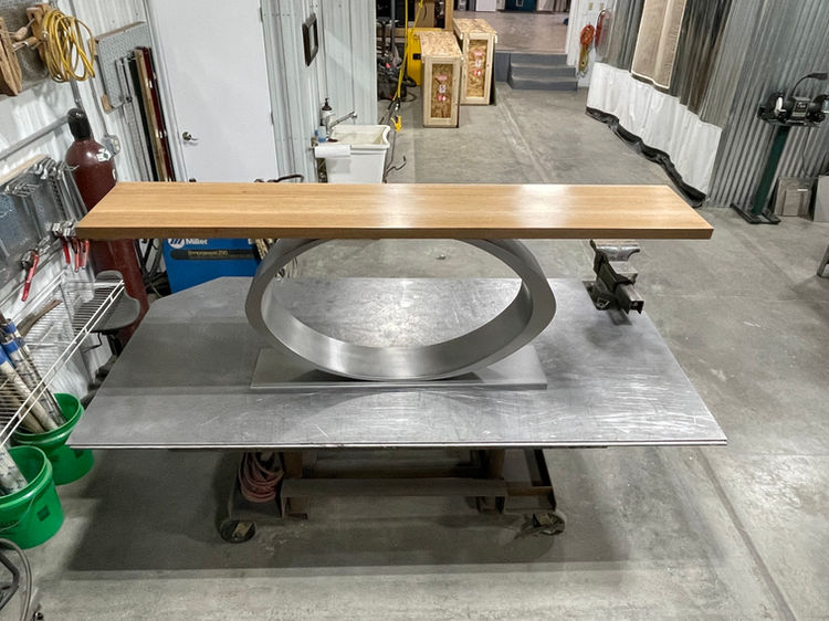 The Oval Hall Table is available in stainless steel and bronze. Available wood species are Ash, Mahogany, Maple and Walnut. Other wood species may be considered.